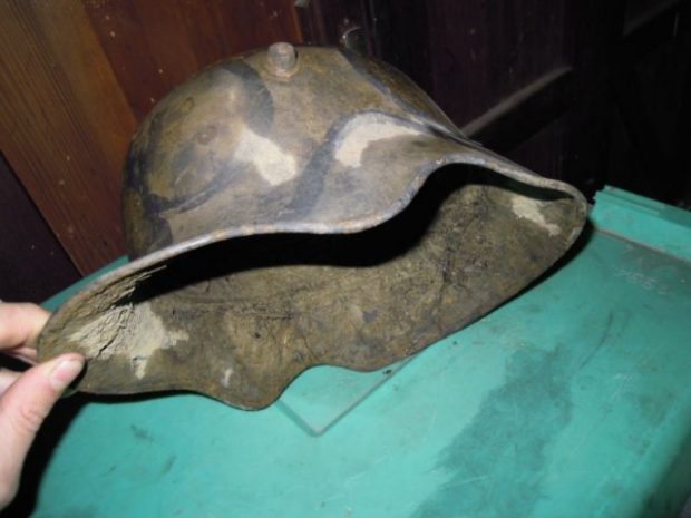 The helmets that were found were the Stahlhelm M1916, which was introduced into battle in 1916. The helmets were built very well and offered great protection for soldiers at the time. The helmet was a big step up from what was worn before and could deflect a bullet to the head with ease, leaving nothing but a dent.